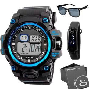 Relogio Digital Prova Dagua + Caixa Presente Data Alarme Grande Azul Esportivo Cronometro Kit de Acessórios Estilosos Orizom Spaceman