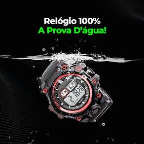 Relogio digital prova dagua + oculos proteção uv + caixa grande alarme robusto cronometro preto data
