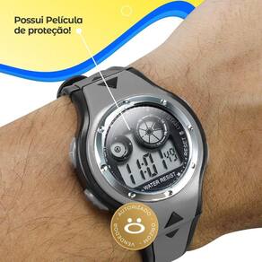Relogio digital silicone qualidade premium criança infantil relógio Digital Infantil Orizom Kids Cinza e Preto - Tema Mini Astronautas