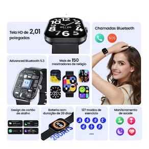 O mais do que apenas um relógio, é a fusão perfeita entre moda e funcionalidade. Projetado com o homem moderno em mente, este dispositivo impressionante é a sua chave para uma vida mais conectada, saudável e eficiente. Acompanhe o seu progresso fitness: Com o, você terá um parceiro de treinamento completo no seu pulso. Monitore passos, distância, calorias queimadas e até mesmo o seu ritmo cardíaco em tempo real. Mantenha-se em forma e ativo como nunca antes Elegância sofisticada: O é mais do que apenas uma ferramenta de saúde. Seu design sofisticado e elegante combina perfeitamente com qualquer roupa, seja um terno elegante ou um look casual. Você estará sempre na moda, seja qual for a ocasião. Conectividade incomparável: Receba notificações, mensagens e chamadas diretamente no seu pulso. O mantém você conectado ao seu mundo, permitindo que você gerencie sua vida de forma mais eficiente, mesmo em movimento. Bateria de longa duração: Diga adeus às preocupações com a bateria. O oferece uma autonomia impressionante para que você possa aproveitar todas as suas funcionalidades sem interrupções. Compatibilidade universal: Compatível com dispositivos Androd e OS, o é o parceiro perfeito para qualquer smartphone, garantindo que você possa aproveitar ao máximo suas funcionalidades. Tamanho do visor: 1.5 polegadas Tela cheia colorida Resoluções: 454 Bateria capacidade: 220 mAH Número: ANATEL 06067-0-13015 Marca: Não Informado