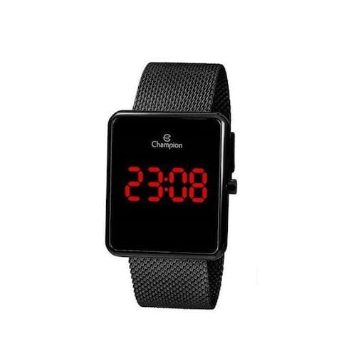 - Marca: Champion - EAN : 7891511396491 - Modelo : CH40080D - Gênero: Unissex - Mecanismo: Digital ( Os digitos só aparecem quando acionado o botão lateral ) - Alimentação: Bateria - Composição do Vidro: Cristal Mineral - Material da Caixa: Metal - Cor da Caixa : Preta - Material da Pulseira: Aço inoxidável - Co da pulseira : Preta - Tampa Fundo: Rosqueado - Largura da Caixa: 3,8 cm - Comprimento da Caixa : 4,5 cm - Comprimento do Relógio ( caixa mais pulseira ) : 23 cm - Largura da Pulseira : 2,4 cm - Espessura da Caixa: 1,0 cm - Peso do Relógio : 110 g - Resistência à Água: 3 ATM (Não é necessário retirar do pulso ao lavar as mãos ou na chuva ) ( Não utilizar ao tomar banho , mergulhos ou piscina )