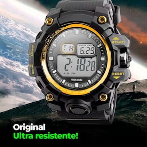 Relógio Digital Masculino Orizom Spaceman Preto Com Detalhe Dourado - Resistente à ÁguaAdicione um toque de estilo e praticidade ao seu dia com o Relógio Digital Masculino Orizom Spaceman. Com maquinário blindado e pulseira ajustável feita de silicone, este relógio é ideal para uso diário em diferentes situações. Além disso, possui alarme, calendário e data, tornando-o 100% funcional. Não perca tempo e adquira já o seu relógio Orizom Spaceman, resistente e durável, para estar sempre preparado para as atividades do dia a dia. (NÃO ACOMPANHA CAIXA)