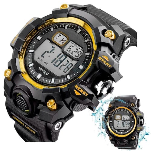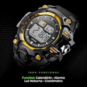 Relogio Digital Vermelho Silicone Prova Dagua Robusto Corrida Esportivo Grande Relógio Digital Masculino Orizom Spaceman Preto Com Detalhe Dourado - Resistente à Água Adicione um toque de estilo e praticidade ao seu dia com o Relógio Digital Masculino Orizom Spaceman. Com maquinário blindado e pulseira ajustável feita de silicone, este relógio é ideal para uso diário em diferentes situações. Além disso, possui alarme, calendário e data, tornando-o 100% funcional.