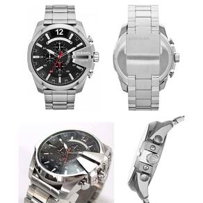 Mega Chief Dz4308 : 12 meses Características Composição do vidro: cristal mineral flame fusion resistente a riscos. Material da caixa: aço inox Material da pulseira: aço inox Medidas: Largura da caixa: 50 mm Espessura da caixa: 14 mm Resistência à água Pressão: 120 atm Resistência a respingos: sim Resistência à água corrente: sim Resistência a mergulho em piscina: sim Funções do relógio Dia do mês Cronômetro Marca: Não Informado