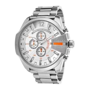 Características Composição do Vidro: Cristal Mineral flame fusion resistente a riscos. Material da Caixa: Aço inox Material da Pulseira: Aço Inox Medidas: Largura da Caixa: 50 mm Espessura da Caixa: 14 mm Resistência à Água Pressão: 120 ATM Resistência a Respingos: Sim Resistência à Água Corrente: Sim Resistência a Mergulho em Piscina: Sim Funções do Relógio Dia do Mês Cronômetro