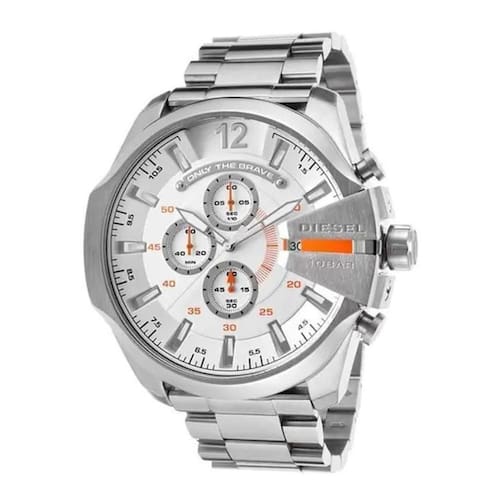 Características Composição do Vidro: Cristal Mineral flame fusion resistente a riscos. Material da Caixa: Aço inox Material da Pulseira: Aço Inox Medidas: Largura da Caixa: 50 mm Espessura da Caixa: 14 mm Resistência à Água Pressão: 120 ATM Resistência a Respingos: Sim Resistência à Água Corrente: Sim Resistência a Mergulho em Piscina: Sim Funções do Relógio Dia do Mês Cronômetro Marca: Não Informado