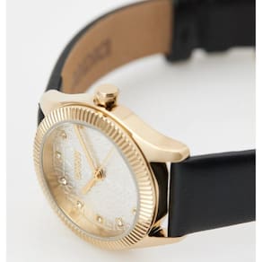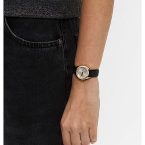 Elegância compacta e contemporânea definem o Relógio Donna Karan. Com caixa de cerca de 26 mm em aço dourado, pulseira couro preto e mostrador cinza metálico, este modelo feminino equilibra delicadeza e presença. Equipado com mecanismo de quartzo, vidro mineral resistente e resistência à água de 50 m, ele une beleza e funcionalidade para o uso cotidiano ou ocasiões especiais.