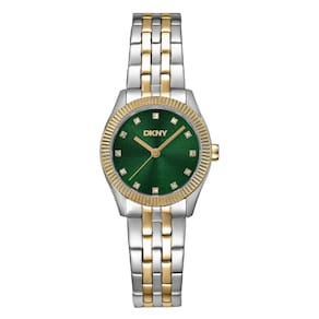 Relógio DKNY DK1L126M0095 Bicolor Elegância compacta e contemporânea definem o Relógio Donna Karan. Com caixa de cerca de 26 mm em aço dourado, pulseira bicolor prata e dourada e mostrador verde, este modelo feminino equilibra delicadeza e presença. Equipado com mecanismo de quartzo, vidro mineral resistente e resistência à água de 50 m, ele une beleza e funcionalidade para o uso cotidiano ou ocasiões especiais. Especificações Técnicas Mecanismo: Analógico Quartzo Gênero: Feminino Visor: Verde Vidro: Cristal mineral Prova d'água: 50m Diâmetro da caixa: 26mm Espessura da caixa: 7mm : 1 ano pela fabricante DKNY Marca: Não Informado