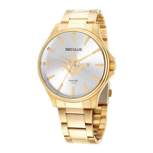 Relógio Dourado Analógico Masculino Seculus Long Life 44116GPSVDA1