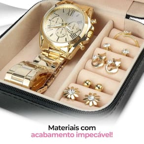 Chegou o kit exclusivo de acessórios banhados a ouro, perfeito para quem busca estilo e luxo em cada detalhe. Composto por peças selecionadas com requinte, este conjunto oferece a você uma variedade de opções para arrasar em todas as ocasiões.