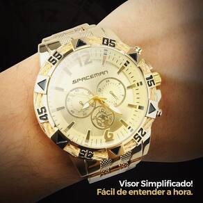 Relogio dourado masculino + cordão + pulseira aço inoxidável Kit Presente Masculino Orizom Spaceman - Relógio Analógico Dourado + Corrente, Pingente e Pulseira em Aço Inoxidável + Óculos de Sol Premium Surpreenda com o Kit Presente Masculino Orizom Spaceman Este conjunto exclusivo combina elegância, estilo e qualidade incomparável. - Relógio Masculino Analógico Orizom Spaceman: Desfrute da sofisticação do design dourado e banhado em aço inoxidável, para durabilidade e resistência impecáveis. - Corrente Grumet Banhada em Aço Inoxidável: Aproximadamente 60cm de pura elegância. O complemento perfeito para qualquer visual refinado. - Pingente Cruz Banhado em Aço Inoxidável: Adicione significado e estilo ao seu look. Um toque de personalidade e fé que não passa despercebido. - Pulseira Grumet Banhada em Aço Inoxidável: Aproximadamente 25cm de pura sofisticação. O toque final para um visual completo e elegante. - Óculos de Sol Orizom Spaceman X: Proteção premium para seus olhos com estilo incomparável. e hastes em acetato, lentes com proteção UV para conforto e proteção em grande estilo. Presenteie com classe e estilo Este kit completo é a escolha ideal para surpreender o homem especial em sua vida. Perfeito para aniversários, datas comemorativas ou para mostrar seu carinho. Garanta já o seu conjunto de elegância e estilo exclusivo Orizom Spaceman Marca: Não Informado Ean: 7893685003175