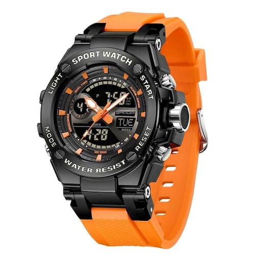 Relógio Dual Display Digital Com Pulseira Silicone Multifuncional Impermeavel Laranja
