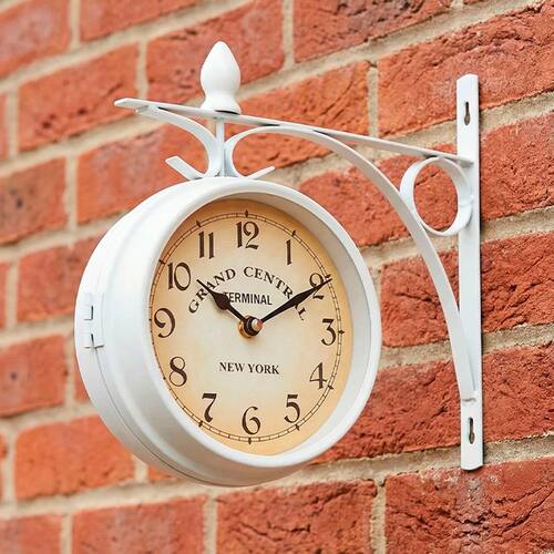 1x Relógio Branco De Parede Dupla Face Estação De Trem Terminal New York