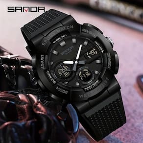 Descubra o relógio eletrónico desportivo para homem, uma verdadeira fusão de tecnologia e estilo. Este relógio é a escolha ideal para aqueles que procuram um acessório que vá além da mera contagem do tempo. Com um design robusto e moderno, ele se adapta perfeitamente a diferentes ocasiões, sejam elas desportivas ou casuais. Seja na escola, em férias ou até mesmo em celebrações de aniversário, este relógio se destaca como uma peça essencial no seu dia a dia.