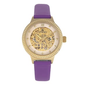 Relógio de pulseira de couro Empress Alice Automatic MOP Skeleton Dial, roxo, tamanho único, EMPEM3205