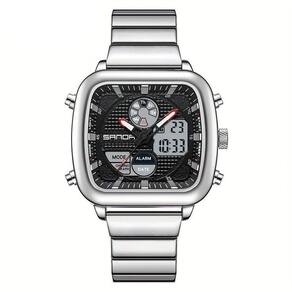 Relógio Esportivo De Movimento Duplo Sanda, à Prova D`água E Com Luz Noturna Prateado Preto A