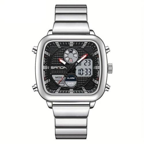 Relógio Esportivo De Movimento Duplo Sanda, à Prova D'água E Com Luz Noturna Prateado Preto A