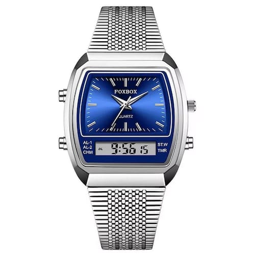 Cada detalhe foi cuidadosamente pensado para atender às suas necessidades. Equipado com uma tela de LED que oferece clareza incomparável, mesmo em condições de baixa luz, e um revestimento à prova d'água que garante proteção até 3 Bar de profundidade. A pulseira de aço inoxidável não só proporciona um ajuste confortável, mas também exala uma durabilidade excepcional. Este relógio de moda não é apenas um acessório, mas sim, um símbolo de sofisticação para o homem atual.