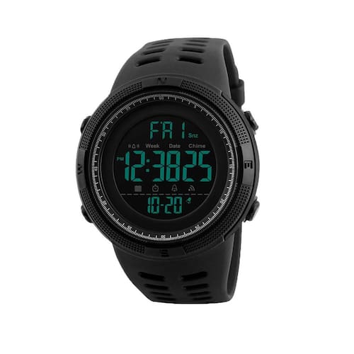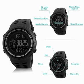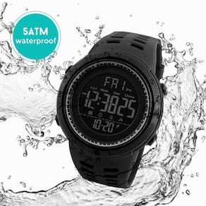 Descrição do produto: Descrição do produto: Principais características: ? Relógio esportivo digital LED à prova d'água projetado para homens. ? Equipado com função de alarme, calendário, dia, data e cronômetro. 12/24 horas. ? Veja a hora claramente no escuro com luz de fundo, fácil de ler. Pulseira de silicone de alta qualidade, macia e confortável de usar. ? À prova d'água 50 m é conveniente para o dia a dia. Fivela de metal, ajuste de alça livre. Material: - Tipo de movimento: relógio de pulso digital esportivo à prova d'água. - Pulseira: pulseira de resina de silicone de alta qualidade oferece uma experiência de uso confortável. - Superfície do espelho: Vidro de resina altamente transparente, resistente a arranhões. - Capa: Capa de PC importada. - Botão: aço inoxidável. - Tampa inferior: aço inoxidável de qualidade, resistente à água. Parâmetros: Diâmetro do mostrador: 50 mm Espessura do mostrador: 17 mm Comprimento da alça: 270 mm Largura da pulseira: 20 mm Conteúdo da embalagem: 1 relógio esportivo. 1 manual de instruções (idioma português não garantido). 1 presente. 1 caixa de relógio. **Observação**: Sobre relógios à prova d'água ? A prova d'água é testada em condições estáticas. Usar um relógio que é 50 metros à prova d'água exporá o relógio a uma pressão muito maior do que durante um teste estático de 50 metros. Portanto, o número de metros mostrado no relógio não indica a profundidade para a qual o relógio pode ser levado. ?Estes relógios suportam pequenos respingos de água, mas não devem ser utilizados ao lavar as mãos ou submergir os ponteiros na água. ? Por favor, não puxe os botões debaixo d'água, o contato frequente com água reduzirá a vida útil do relógio. ? Limpe o relógio com um pano macio e limpe-o suavemente. - Multifuncional: mostrador digital, calendário, luz traseira de LED, data, alarme, impermeável a 50 m, resistente a choques, cronômetro, 12/24 horas. Que relógio esportivo perfeito para esportes ao ar livre e internos - Design simples e esportivo: relógios masculinos com mostrador esportivo, visual elegante. Números com luz traseira de LED, o relógio mostra a hora clara no escuro, fácil de ler e usar - Pulseira de silicone de alta qualidade: fivela de pino de relógio de metal, fácil de ajustar o tamanho. Flexível, confortável e ecológico - À prova d'água: relógio de pulso à prova d'água de 50 m, uso diário à prova d'água, respingos, chuva, resistente à lavagem à mão, chuveiro, sem problemas. Exceto sauna, banho, mergulho e não puxe o botão debaixo d'água - Serviço pós-venda: se você tiver alguma dúvida sobre este relógio, sinta-se à vontade para entrar em contato com o vendedor, nós lhe daremos uma solução satisfatória