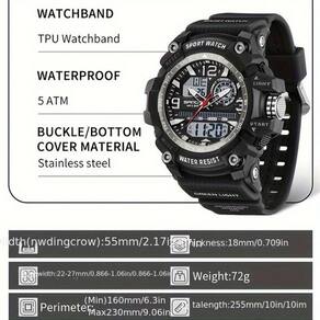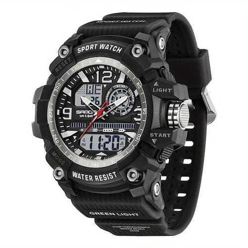 Descubra a perfeita fusão entre estilo e funcionalidade com este relógio masculino esportivo digital multifuncional. Projetado para o homem moderno e ativo, este relógio oferece muito mais do que apenas exibir as horas; ele se torna um companheiro confiável para diversas aventuras. Sua caixa de resina sintética confere um visual robusto e moderno, enquanto a pulseira de TPU garante conforto ao longo do dia, mesmo nas atividades mais intensas.
