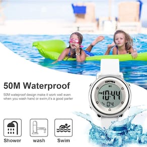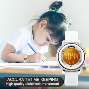 Relógio esportivo digital infantil, relógio impermeável ao ar livre, alarme de LED, cronômetro de pulso infantil, relógio infantil para crianças de 3 a 10 anos, pulso para meninos e meninas (1100E branco)