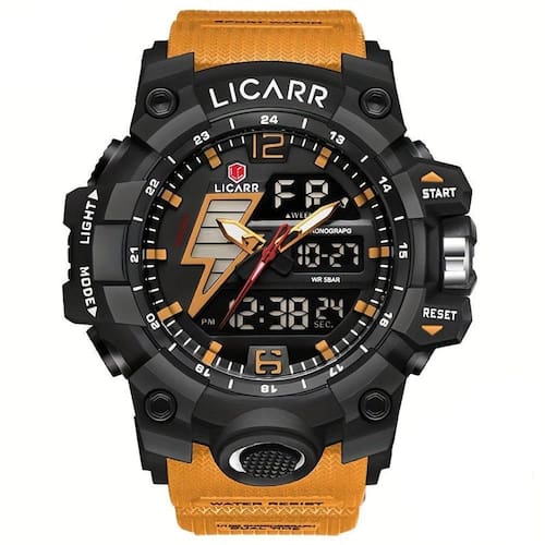 Imagine um relógio que combina inovação tecnológica com um estilo audacioso e moderno. Este relógio desportivo de exibição dupla para homens é a definição perfeita de uma peça atraente e funcional. Com um design que une o clássico ao contemporâneo, conta com a resistência necessária para acompanhar qualquer aventura, seja ao ar livre ou em ambientes mais urbanos, sem comprometer o estilo. Suas cores fortes, preto e vermelho, destacam a robustez do produto, enquanto a pulseira de borracha amplia o conforto e a praticidade.