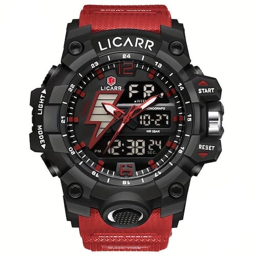 Imagine um relógio que combina inovação tecnológica com um estilo audacioso e moderno. Este relógio desportivo de exibição dupla para homens é a definição perfeita de uma peça atraente e funcional. Com um design que une o clássico ao contemporâneo, conta com a resistência necessária para acompanhar qualquer aventura, seja ao ar livre ou em ambientes mais urbanos, sem comprometer o estilo. Suas cores fortes, preto e vermelho, destacam a robustez do produto, enquanto a pulseira de borracha amplia o conforto e a praticidade.