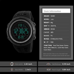 Sobre a JOYSAE: O RELÓGIO JOYSAE, estiloso, clássico e esportivo, foi desenvolvido com atenção meticulosa à qualidade, função e detalhes. Um relógio maravilhoso é um excelente presente para seus amigos e familiares, adequado para diferentes roupas e qualquer ocasião. Especificação: Relógio importado Movimento: movimento de quartzo do Japão de alta qualidade Diâmetro do mostrador do relógio: 49 mm/1,93 polegadasEspessura do mostrador do relógio: 15 mm/0,59 polegadasComprimento da pulseira: 250 mm/0,59 polegadas Cor da pulseira de relógio de mm/9,85 polegadas: preto Material da pulseira: plástico PU Caixa de relógio: PC Tipo de fecho de pulseira: fivela Fecho de relógio: aço inoxidável Peso do relógio de aço: 60 g Código da bateria do relógio: CR2032 Lista de embalagem: 1 x relógios de pulso esportivos JOYSAE 1 x manual do proprietário de relógios de pulso esportivos JOYSAE 1 x pequena caixa de presente estiloNota: 1. A face do relógio de pulso esportivo pode ser coberta por uma película protetora. Decole antes de usar para melhores experiências. Use o pano macio para limpar a pulseira do relógio. 2. POR FAVOR, NÃO pressione nenhum botão debaixo d'água. Entrar em contato com muita água pode reduzir a vida útil do relógio digital. Evite o uso em temperaturas extremamente quentes ou frias, mantenha-se afastado do vapor e da água quente, em caso de danificar o anel impermeável do relógio. 3. Se você tiver algum problema, não hesite em nos contatar.