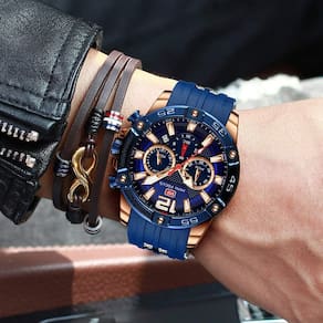 Importado?O relógio à prova d'água dos homens, uma boa mistura de esporte e casual, perspectiva de rosto grande da moda com multifunção, combina jeans, camiseta ou ternos muito bem, é um presente de moda para pais, namorados ou outros estudantes e colegas do sexo masculino, e é ideal para conquistar corações de amigos e familiares? Relógios analógicossports: movimento japonês de quartzo, manutenção precisa e precisa do tempo, A bateria importada fornece ao pulso mais de 3 anos de duração?Mul-tifuncional relógio: Três subdiais exibem o Cronógrafo &12h/24h,Calendário,Impermeável, resistente a choques, Mãos Luminosas e Calibração, é conveniente ler o tempo no vidro de cristal escuro?Harden para resistente a arranhões, a correia de silicone de 240 mm é macia para usar, a caixa de liga Harden e a fivela de aço inoxidável do relógio é um design de fivela?A resistente a 30M/100FT : Lavar as mãos, chover ou espirrar, usar diariamente à prova d'água. Não é adequado para nadar, mergulhar, tomar banho