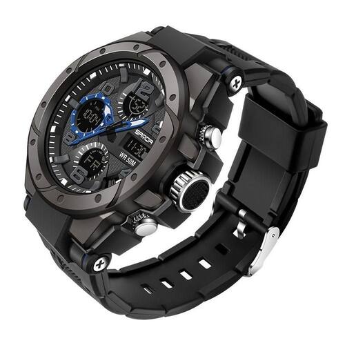 Além disso, o Relógio Esportivo SANDA é à prova d'água até 50 metros, o que significa que você pode usá-lo sem preocupações enquanto pratica esportes aquáticos ou sob chuva intensa. A pulseira de borracha garante conforto duradouro, tornando este relógio não apenas uma ferramenta prática, mas também confortável o suficiente para usar o dia inteiro.