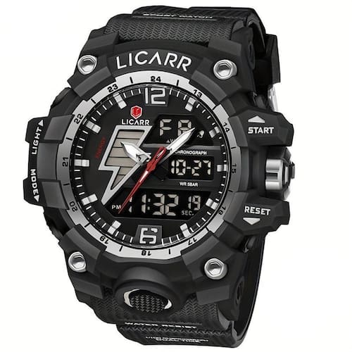 O Relógio é o complemento perfeito para o estilo de vida ativo do homem moderno. Combinando design robusto e alta funcionalidade, este relógio traz uma estética poderosa e prática, ideal para quem busca aliar estilo e desempenho, oferece dupla mostração analógica e digital, permitindo fácil leitura das horas em qualquer ambiente. Sua resistência à água de até 50 metros faz dele um companheiro ideal tanto para a academia quanto para atividades ao ar livre, garantindo performance e durabilidade mesmo nas situações mais desafiadoras.