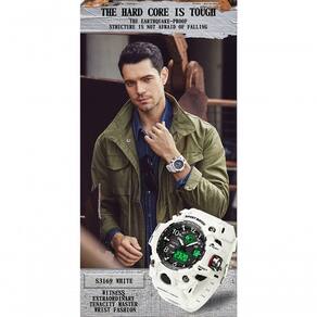 Este relógio é mais do que um simples acessório; é um companheiro confiável. Feito com materiais de alta qualidade, sua correia em TPU e o estojo de resina sintética garantem resistência e conforto. Independente se você está navegando pelas águas ou correndo pela cidade, este modelo casual complementa seu estilo com uma presença marcante.