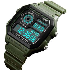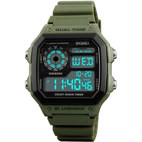 Relógio multifuncional quadrado: Tempo duplo, data-dia, Cronômetro, Contagem regressiva e alarme multifunção Relógio digital: movimento japonês de quartzo com display digitalWatch com cronômetro: cronômetro de 1/100 segundos e temporizador de contagem regressiva, suporte máximo 23 horas, 59 minutos e 59 segundos Banda de poliuretano com fecho de fivela, confortável e durável. Peso leve, design para adolescentes, homens e mulheres adultos50M relógio impermeável: Em geral, adequado para natação e chuveiro frio, mas mantenha-se longe de água quente e vapor