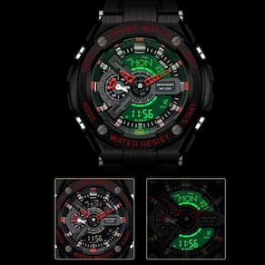 A tela de LED com iluminação de fundo e ponteiros luminosos tornam fácil a leitura das horas, mesmo em ambientes com pouca luz. Além disso, o relógio possui um calendário completo, exibição de semana e alarme, mantendo você sempre no controle do seu tempo.