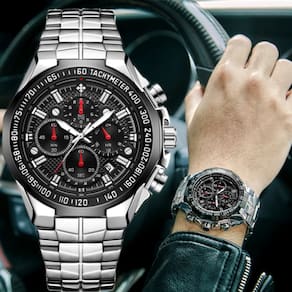 Relógio Esportivo para Homens de Quartzo Pulseira em Aço Inoxidavel Á prova água - Preto Prata