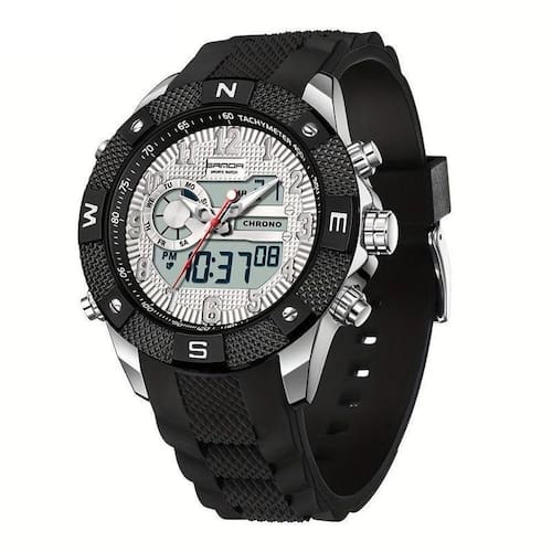 Relógio Esportivo Para Homens Duplo Display Analógico Digital Impermeavel Preto Prateado