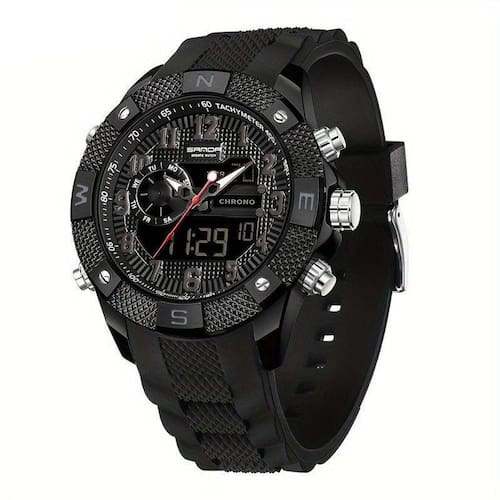[Estilo] Com um design esportivo e arrojado, este relógio traz um toque de modernidade ao seu visual sem abrir mão da elegância clássica. [Funcionalidade] Dupla exibição que facilita a leitura do horário e suas funções, como cronômetro e despertador, sempre à mão. [Durabilidade] Construído com uma robusta caixa de liga de zinco e alimentação por bateria de botão, garantindo longa duração sem preocupações. [Conforto] Pulseira de silicone flexível e confortável, ideal para um uso prolongado, seja no trabalho ou em atividades esportivas. [Versatilidade] À prova d'água, é um companheiro confiável para diversas situações, desde reuniões até práticas esportivas.