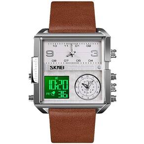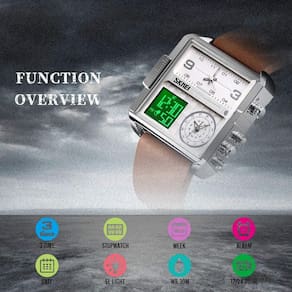 Relógio Multifuncional Militar Mens importado- Mostrador de exibição triplo fresco exclusivo com cronômetro e alarme e data e formato de 12/24 horas, mostrador facial grande LED com a clássica banda de couro ou banda de aço inoxidável, simples e grandioso, expressivo do seu sabor extraordinário Digital Sports Watch: Movimento de quartzo de alta qualidade com tela analógica de três fusos horários, três fusos horários de trabalho é muito conveniente para viajar. Design de discagem esportiva da moda, Mostrador Grande e números com luz, mostram o tempo claro no escuro Confortável e Durável: A faixa de couro Superior que é macia e respirável; a banda de aço inoxidável é clássica e durável, ótima para o uso diário e proporciona uma experiência maravilhosa de desgaste. Perfeito para atividades internas e externas Relógio impermeável para uso diário: 3 ATM À prova d'água: Lavagem das mãos, Dia da Chuva, Sudorese, SEM Problema. NÃO é adequado para mergulho, natação, snorkeling, trabalho relacionado à água Bom Presente para Men Boys: Seu design especial de moda leva você à beira da moda esportiva. Um presente perfeito para famílias e amigos no Natal, Ação de Graças, Dia dos Pais. Adequado para homens ou qualquer um que gosta de relógio de discagem grande deve amar este relógio esporte de moda