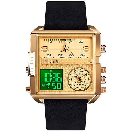 Relógio Multifuncional Militar Mens importado- Mostrador de exibição triplo fresco exclusivo com cronômetro e alarme e data e formato de 12/24 horas, mostrador facial grande LED com a clássica banda de couro ou banda de aço inoxidável, simples e grandioso, expressivo do seu sabor extraordinário Digital Sports Watch: Movimento de quartzo de alta qualidade com tela analógica de três fusos horários, três fusos horários de trabalho é muito conveniente para viajar. Design de discagem esportiva da moda, Mostrador Grande e números com luz, mostram o tempo claro no escuro Confortável e Durável: A faixa de couro Superior que é macia e respirável; a banda de aço inoxidável é clássica e durável, ótima para o uso diário e proporciona uma experiência maravilhosa de desgaste. Perfeito para atividades internas e externas Relógio impermeável para uso diário: 3 ATM À prova d'água: Lavagem das mãos, Dia da Chuva, Sudorese, SEM Problema. NÃO é adequado para mergulho, natação, snorkeling, trabalho relacionado à água Bom Presente para Men Boys: Seu design especial de moda leva você à beira da moda esportiva. Um presente perfeito para famílias e amigos no Natal, Ação de Graças, Dia dos Pais. Adequado para homens ou qualquer um que gosta de relógio de discagem grande deve amar este relógio esporte de moda