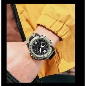 Transforme a forma como você percebe o tempo com o relógio militar digital SMAEL 8039, uma verdadeira obra-prima de engenharia e design esportivo. Este relógio não é apenas um acessório, é uma extensão do seu estilo de vida ativo, oferecendo funcionalidades que vão muito além de um simples marcador de horas. Totalmente à prova d'água até 50m, ele é o companheiro ideal para as suas aventuras, sejam elas em terra ou nas profundezas aquáticas. Com um display analógico-digital elegante e resistente, o SMAEL 8039 é o equilíbrio perfeito entre performance e estética.