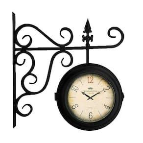 Relógio Estação Dupla Face Retrô Europeu Preto Em Metal Relógio quartz decorativo