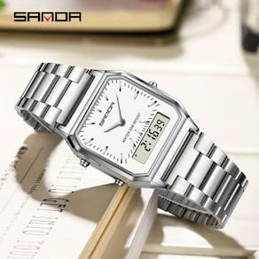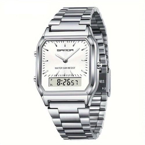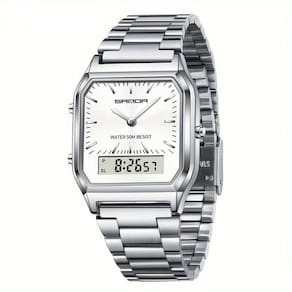 Especificações: [Material Premium] Pulseira feita em aço inoxidável, proporcionando resistência e um toque de sofisticação ideal para o uso diário sem perder o brilho . [Design Moderno] O estojo do relógio é fabricado em liga metálica, exibindo um mostrador quadrado único que se destaca por seu design o e contemporâneo. [Perfeito para Aventuras] Com resistência à água de até 50 metros, este relógio é ideal para acompanhá-lo em diversas situações, seja no trabalho ou outdoor. [Tecnologia Avançada] Equipado com movimento digital e modo de exibição duplo explícito, oferece precisão e facilidade na leitura do tempo a qualquer momento. [Alimentação Confiável] Funciona com bateria tipo botão de longo diâmetro, garantindo uma longa duração sem preocupações adicionais. Por que comprar isto?