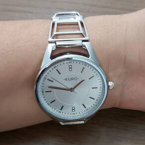 Relógio Euro EU2035YEP/3K feminino prateado mostrador prateado Referência: EU2035YEP/3K Marca: Euro Mecanismo: Analógico Cor da Caixa: Prata Material da Caixa: Metal Cor da Pulseira: Prata Material da Pulseira: Aço inoxidável Cor do Mostrador: Prata Tipo do vidro: Cristal mineral Pulseira ajustável: Sim Tipo de fecho: Trava Medida da Caixa: 4 cm Espessura da Caixa: 0,7 cm Tamanho da caixa: Médio Formato da Caixa: Redondo Resistência à Água: 3 ATM Não usar ao tomar banho ou nadar . Fornecedor: Technos da Amazônia Indústria e Comércio S.A. do Relógio: 1 ano com o Fornecedor Marca: Não Informado Ean: 7891530442261