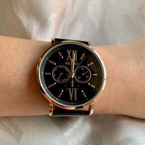 Relógio Euro Multiglow é um acessório moderno, com números romanos nos marcadores de hora, maquinismo multifunção e pulseira de mesh em aço. Seu banho em preto faz um lindo contraste com os a caixa e os detalhes em rosé no mostrador. É o modelo ideal para complementar looks mais neutros. Possui tamanho de caixa 43mm e resistência à água de até 5 ATM.