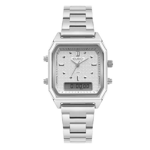Novas caixas de anadigi prometem fazer sucesso na coleção Fashion Fit Sporty. O modelo apresenta banho prata, caixa quadrada de 35mm, mostrador prata texturizado com marcação em todas as horas e módulo digital, trazendo duas tendências num modelo só: A vintage e logomania com o trabalho da logo da euro estampada no mostrador de forma diferenciada Gênero Feminino Largura da Caixa 3,5 Resistencia a agua 5 ATM Cor caixa Prata Material pulseira Aço 12 meses Cor caixa Prata Material pulseira Aço 12 meses Largura da Caixa 3,5 Resistencia a agua 5 AT