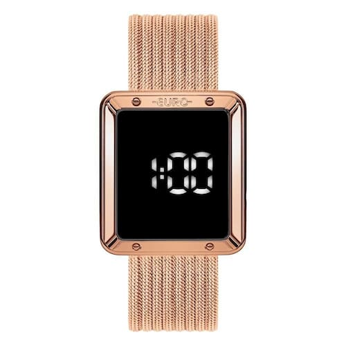 Relógio Euro Feminino Fashion Fit Touch Rosé - Eubj3937ab/4f Eubj3937ab/4f Relógio Euro Fashion Fit Led feminino, quadrado, digital, rosé, com caixa de aço e pulseira em mesh. Um modelo para a mulher que gosta de andar sempre na moda. Resistente à água em até 50 metros. Cor da Caixa - Rose Gold Material da Caixa - Aço Formato da Caixa - Quadrado Material da Pulseira - Aço Tipo de Fecho - Trava por segurança Formato da Caixa - Quadrado Garantia - 12 meses Cor do Mostrador - Preto Cor da Pulseira - Rose Gold Óculos de Sol - Não Semijoias - Não Largura da Caixa (cm) - 3,4 Resistente a Água - 5 ATM Descrição da Resistência - A resistência deste produto permite apenas respingos de água ao lavar as mãos. Não utilizar este produto em qualquer situação que haja contato direto com água. meli_title - Relógio Feminino Euro Lexington Rosê A Prova D'Água Envio 24H Modelo_ML - Relógio Digital Feminino Euro Lexington EUBJ3937AB/4F com Pulseira de Aço Rosê Caixa de 34 Milímetros Vidro de Cristal Mineral A Prova D'água até 50 Metros e 12 Meses de Garantia em Toda Rede de Assistência Technos no Brasil. Cor - Rosé Gênero - Feminino