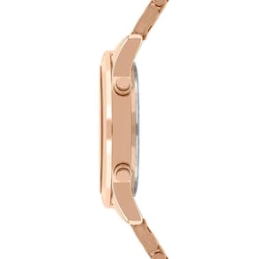 A caixa redonda de 36mm oferece um ótimo equilíbrio entre presença e sutileza no pulso. Já a pulseira em aço com elos largos na cor rosé completa o visual com sofisticação, tornando o modelo perfeito para diversas ocasiões desde o uso diário até eventos mais elaborados.