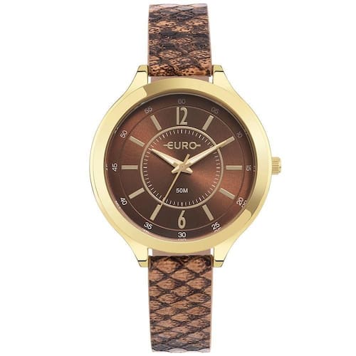 Relógio Euro Feminino Match Dourado - Eu2035ytl/5d Eu2035ytl/5d Os novos modelos da linha Animal Print apresentam pulseira sutilmente texturizada que remete à pele de cobra e traz um toque de modernidade aos looks mais básicos do dia dia. O seu mostrador segue o mesmo tom da pulseira, valorizando looks monocromáticos, com um visual elegante e diferenciado. Cor da Caixa - Dourado Formato da Caixa - Redondo Garantia - 12 meses Cor do Mostrador - Marrom Cor da Pulseira - Marrom Largura da Caixa (cm) - 4,0 Resistente a Água - 5 ATM Descrição da Resistência - A resistência deste produto permite apenas respingos de água ao lavar as mãos. Não utilizar este produto em qualquer situação que haja contato direto com água. meli_title - Relógio Euro Feminino Match Dourado - EU2035YTL/5D Modelo_ML - Relógio Euro Feminino Match Dourado - EU2035YTL/5D Cor - Dourado Tamanho - Médio Gênero - Feminino