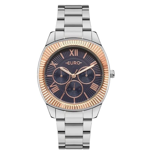 Relógio Euro Feminino Multiglow Bicolor - Eu6p29ajd/4a Eu6p29ajd/4a Os novos lançamentos da coleção Multiglow vão fazer a mulher Euro se apaixonar. Relógio com aro trabalhado, caixa diferenciada para linha Best Seller e multifuncional. Modelo de 3 links em banho prata, aro rosé e mostrador azul. Material da Caixa - Aço Formato da Caixa - Redondo Material da Pulseira - Aço Tipo de Fecho - Trava Lateral Garantia - 12 meses Cor do Mostrador - Azul Cor da Pulseira - Prata Largura da Caixa (cm) - 4,0 Resistente a Água - 5 ATM Descrição da Resistência - A resistência deste produto permite apenas respingos de água ao lavar as mãos. Não utilizar este produto em qualquer situação que haja contato direto com água.