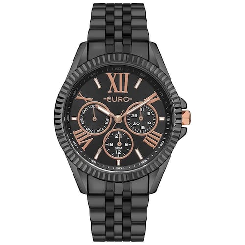 Relógio Euro Feminino Multiglow Preto - Eu6p29aix/4p Para arrasar no dia a dia! A coleção Multiglow está incrível com combinações diferentes, nessa versão você encontra de banho preto com mostrador preto com detalhes rosé e aro corrugado para dar um toque ainda mais especial. Cor da Caixa - Preto Material da Caixa - Aço Formato da Caixa - Redondo Material da Pulseira - Aço Tipo de Fecho - Trava Lateral Garantia - 12 meses Cor do Mostrador - Preto Cor da Pulseira - Preto Descrição da Resistência - A resistência deste produto permite apenas respingos de água ao lavar as mãos. Não utilizar este produto em qualquer situação que haja contato direto com água. Modelo_ML - Relógio Euro Feminino Multiglow Preto - EU6P29AIX/4P plaintext_description_meli - Relógio Euro Feminino Multiglow Preto - EU6P29AIX/4PPara arrasar no dia a dia! A coleção Multiglow está incrível com combinações diferentes, nessa versão você encontra de banho preto com mostrador preto com detalhes rosé e aro corrugado para dar um toque ainda mais especial. meli_title - Relógio Euro Feminino Multiglow Preto - EU6P29AIX/4P Cor - Preto Tamanho - Grande Gênero - Feminino
